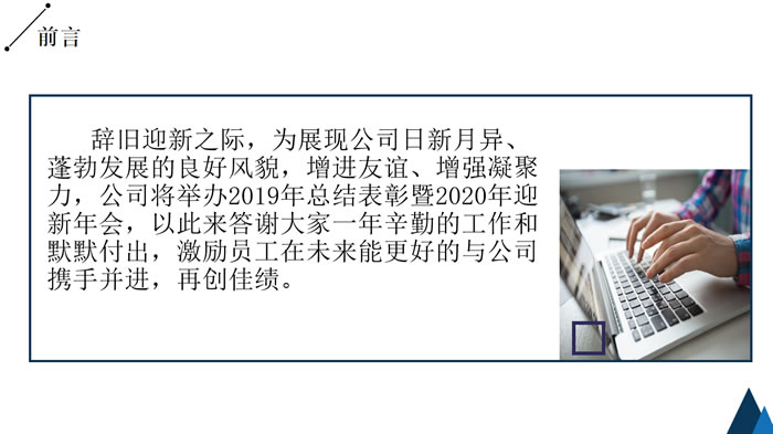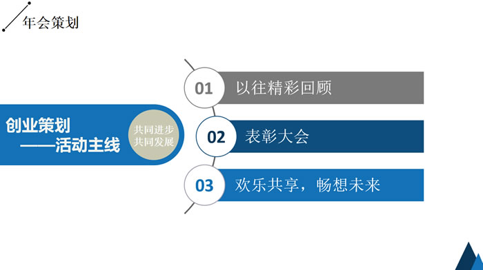 年底年初,企業(yè)的員工需要激勵(lì),組織需要感動(dòng)全體員工、融合全體員工,同時(shí)組織也需要獎(jiǎng)勵(lì)優(yōu)秀成員、鼓勵(lì)后進(jìn)成員。這一切需要一次形式新穎、意義特別的大型活動(dòng)才有可能達(dá)到理想的效果。我們的年會(huì),就像一個(gè)好劇本,有精彩的表演、有感人的瞬間、有耐人尋味的情節(jié)、也有鬧翻全場的笑點(diǎn)。簡單的把酒言歡,短暫的歌舞升平,這樣的年會(huì)其實(shí)充其量只是個(gè)家庭聚會(huì)。選定一個(gè)有感染力的主題,可以非常迅速點(diǎn)燃公司員工的情緒,讓現(xiàn)場狂熱起來,熱情、洋溢、明媚、歡快的氣氛貫穿年會(huì)始終。